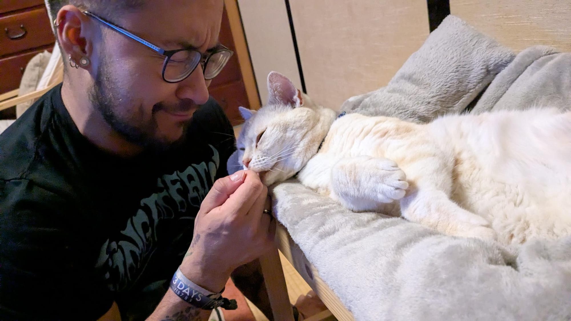Uiteindelijk waren we ontzettend laat in Ishinomaki, waar we verblijven in een traditioneel Japans huis. Met kat natuurlijk. Een stressvolle dag, maar het gevoel van een zachte spinnende kat tegen je aan helpt altijd. Met mensen ben ik niet zo goed en die moeten met hun poten van me af blijven, maar kattenpootjes en -kusjes mogen altijd. Hier konden we echt even ontspannen.