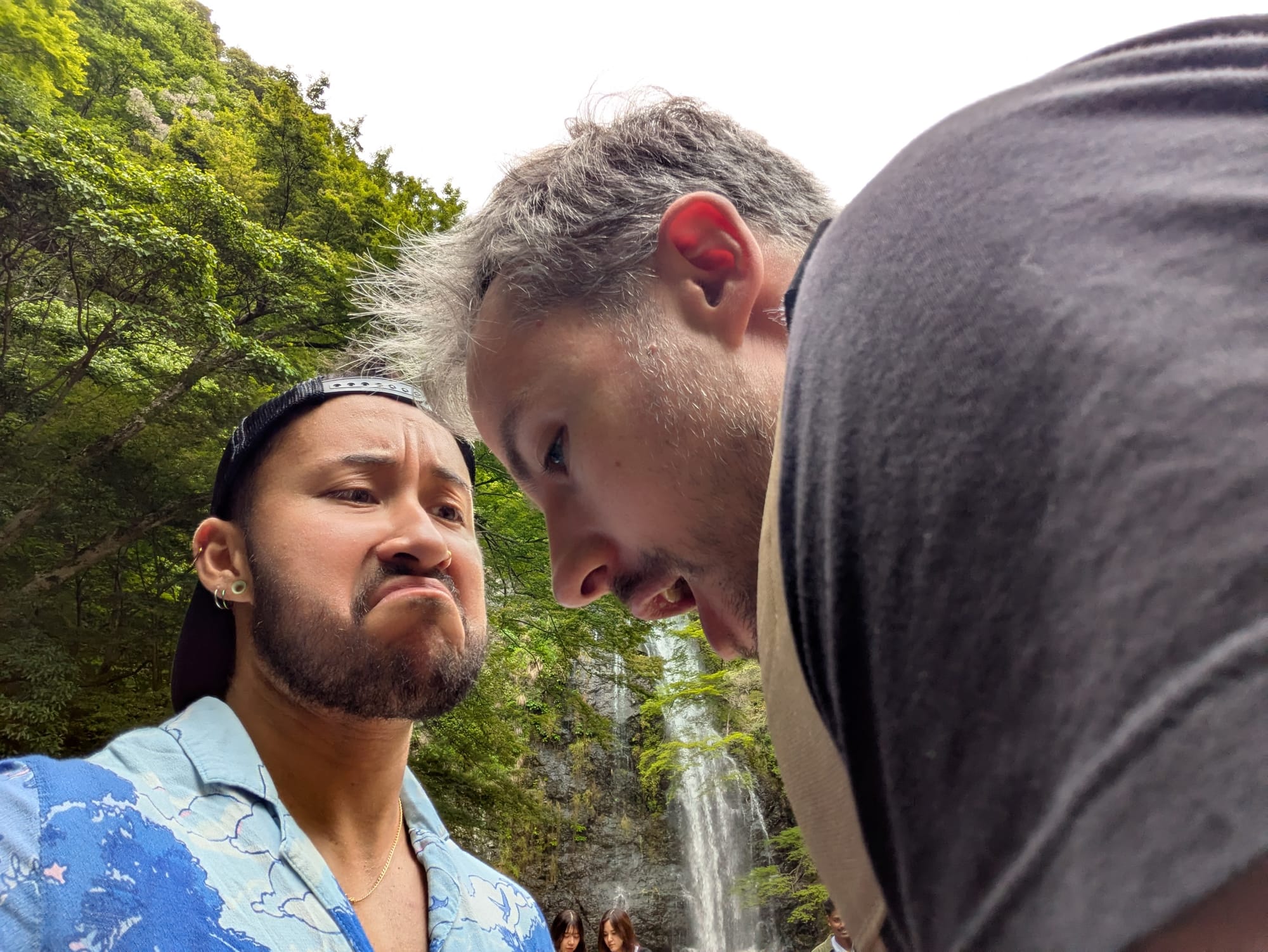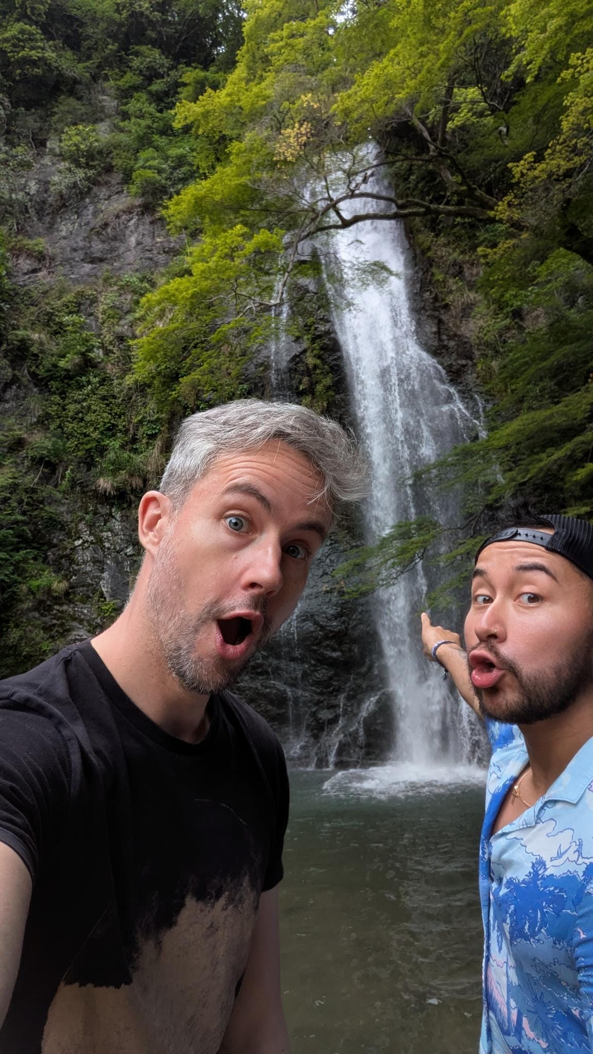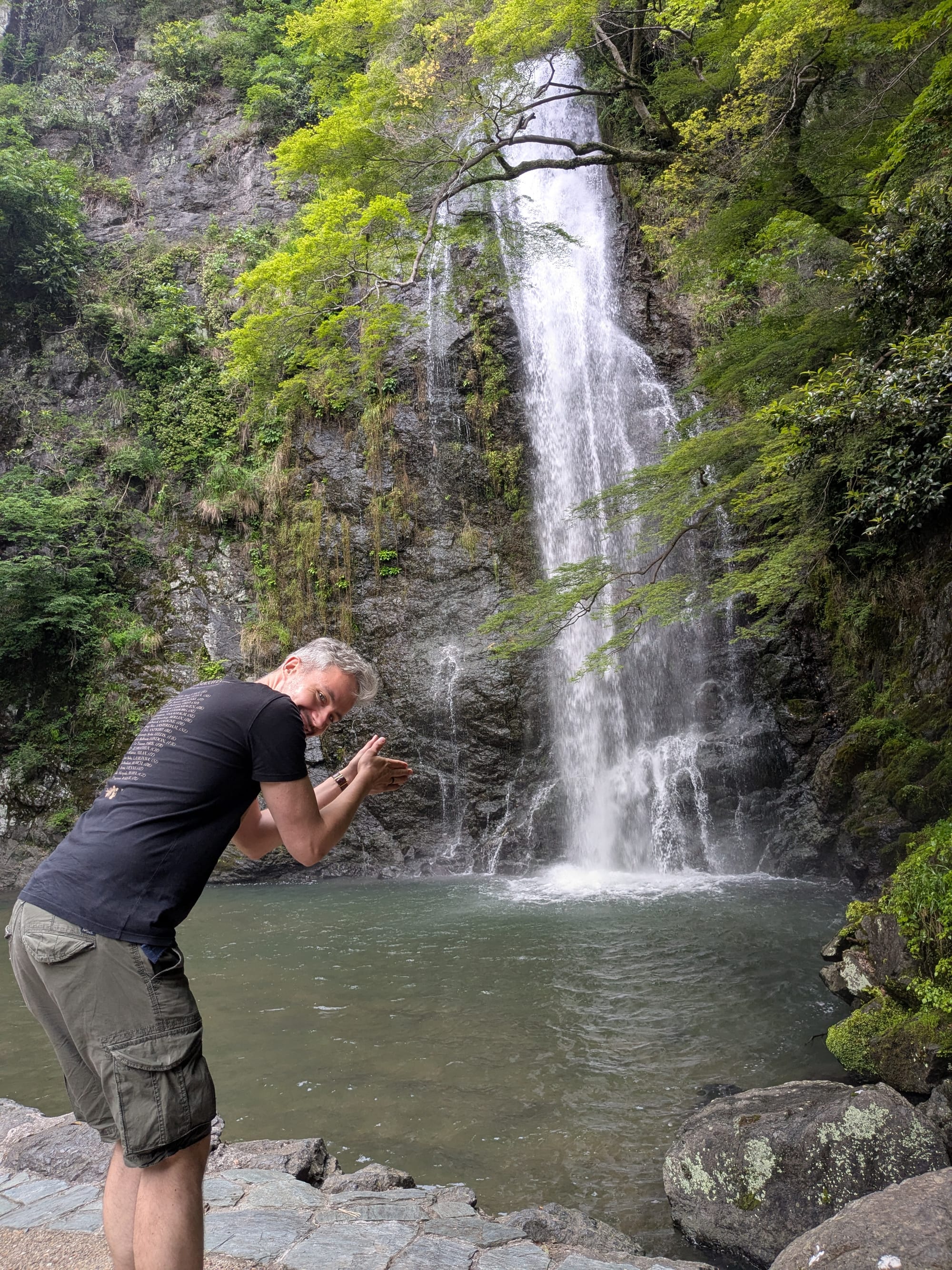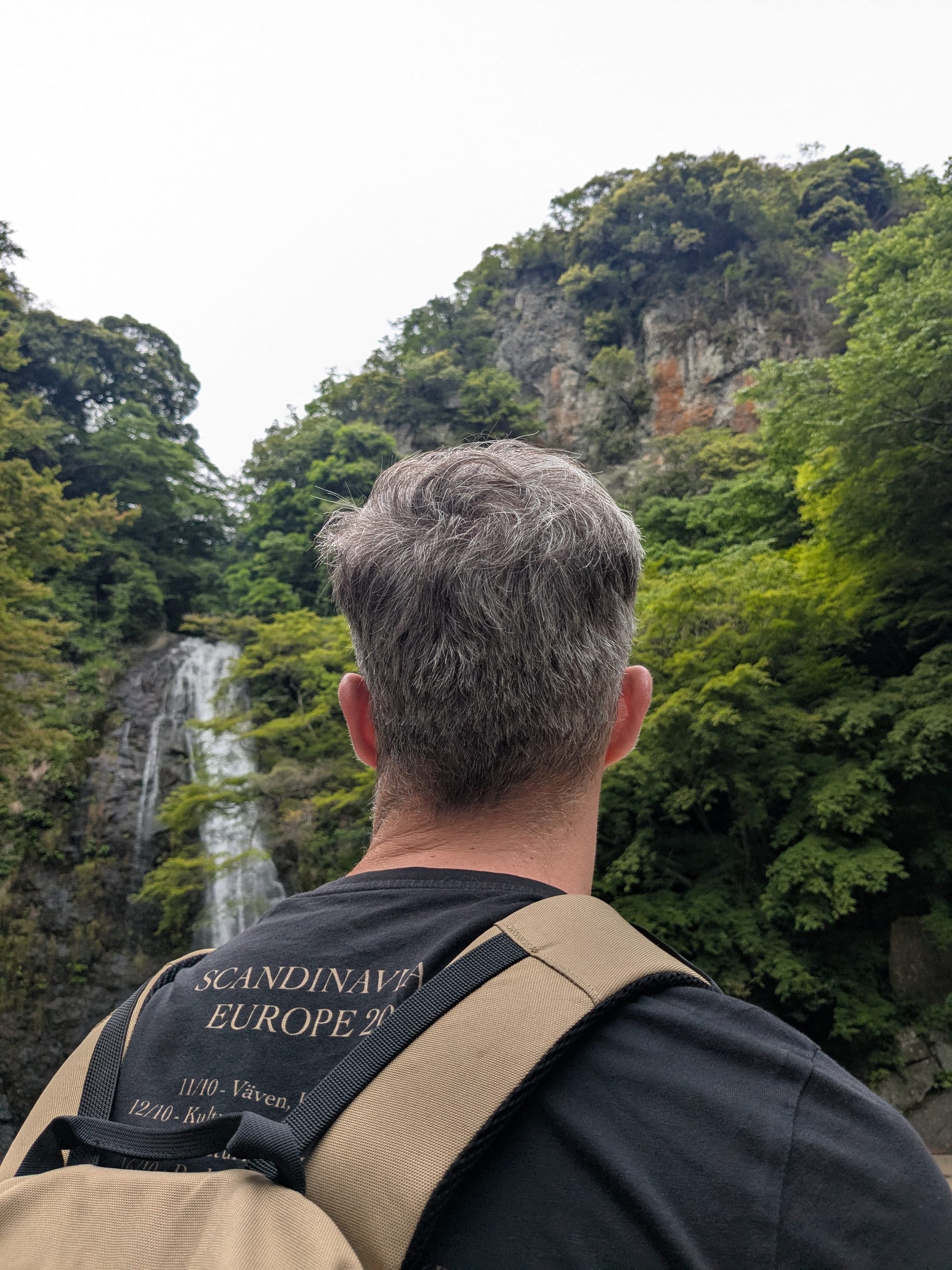 Nu had ik dit al een beetje de weg naar boven, maar toen ik voor het eerst oog in oog met de waterval stond kwam die toch even binnen. Heel bijzonder om dat zo mee te maken en ontzettend fijn om dan ook écht aanwezig te kunnen zijn en alles goed in me te kunnen opnemen. Omdat we er aan het eind van de middag waren was het ook niet al te druk, waardoor we nog even op een bankje konden zitten en konden genieten van de natuur om ons heen. En Geert van het bijna breken van zijn tanden op een pruimenpit. Soms is het handig om verpakkingen te vertalen, bijvoorbeeld wanneer er staat "Kijk uit, bevat pruimenpit". Gelukkig kon Geert hem ook weer uitkotsen. Was die kipsashimi toch nog ergens goed voor.
