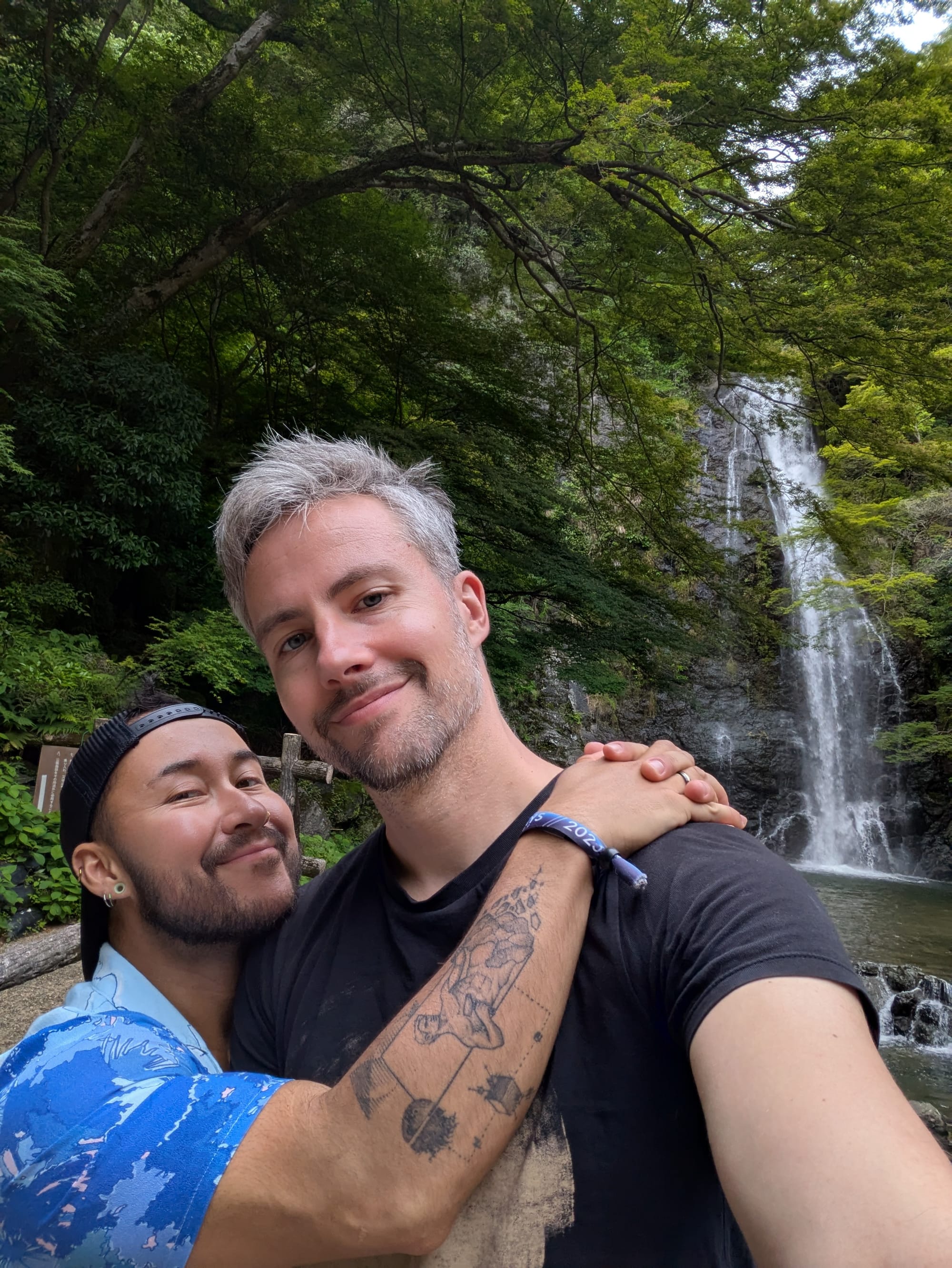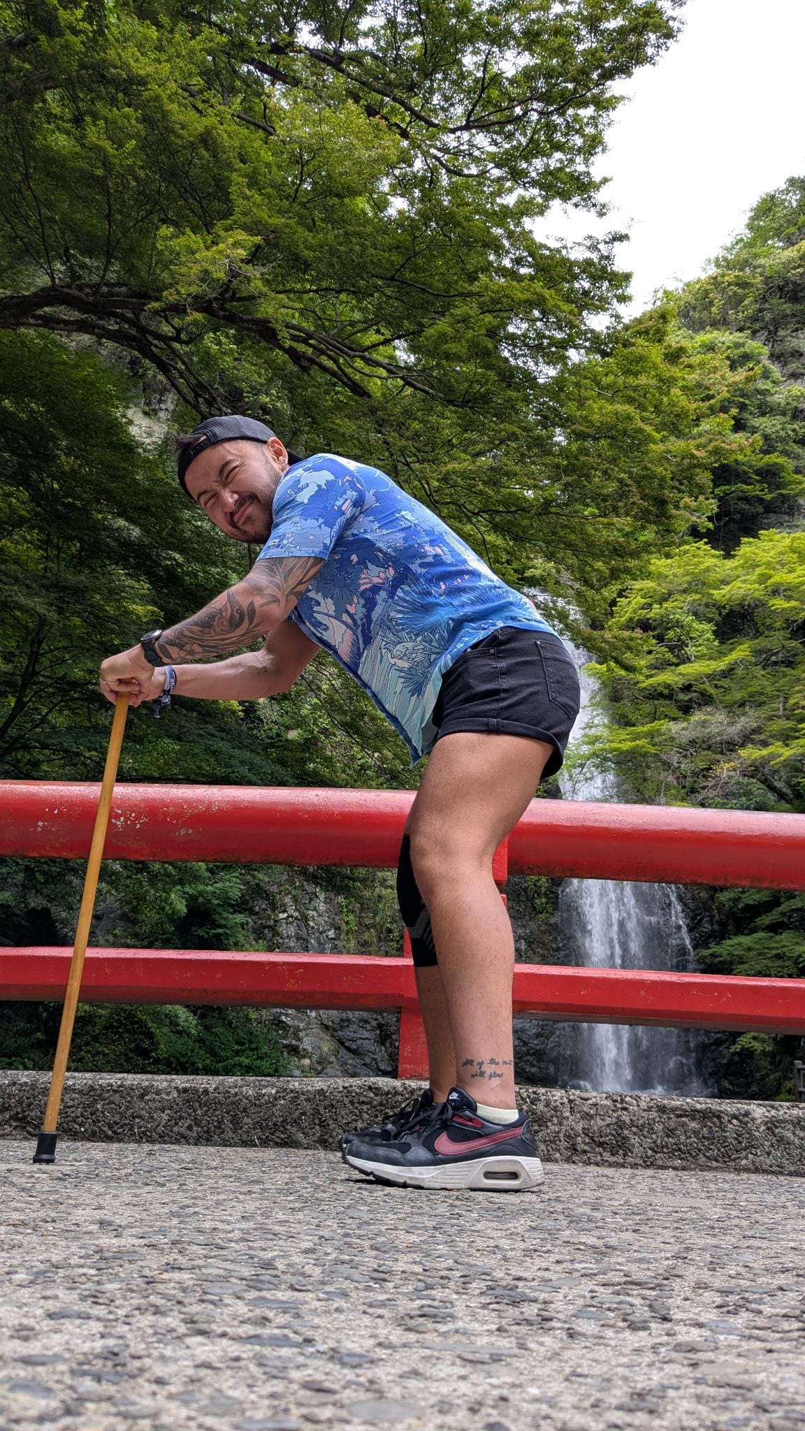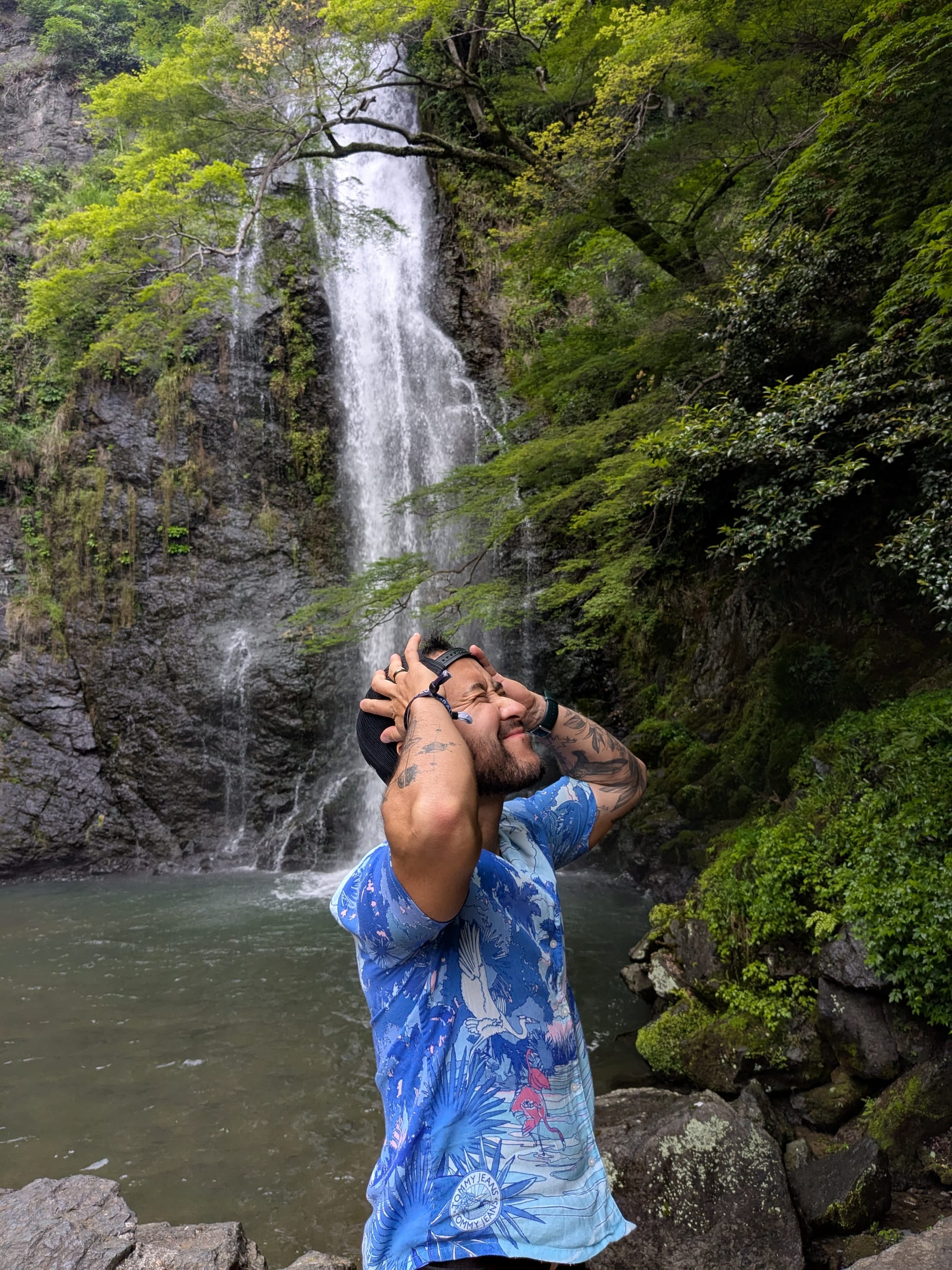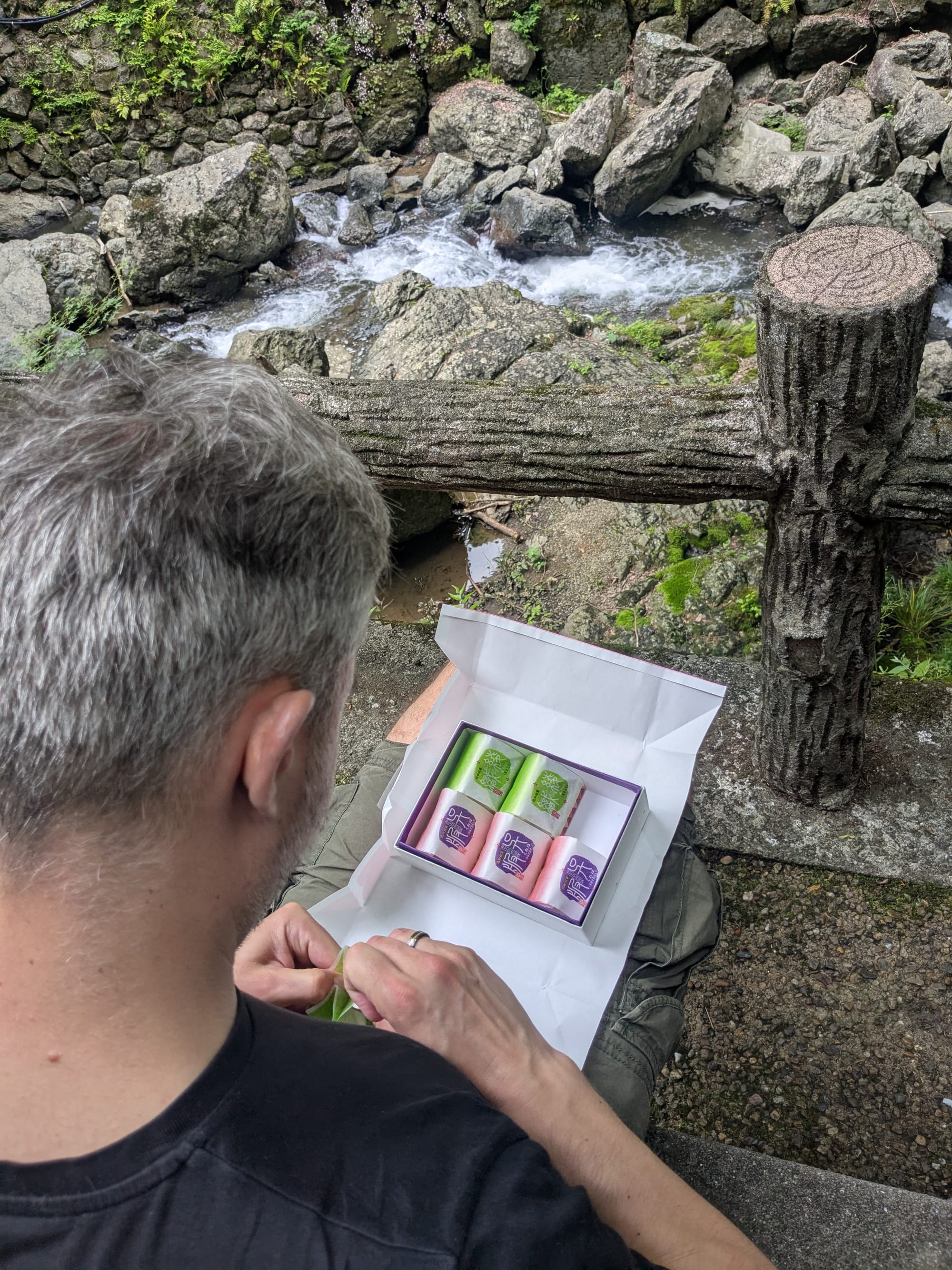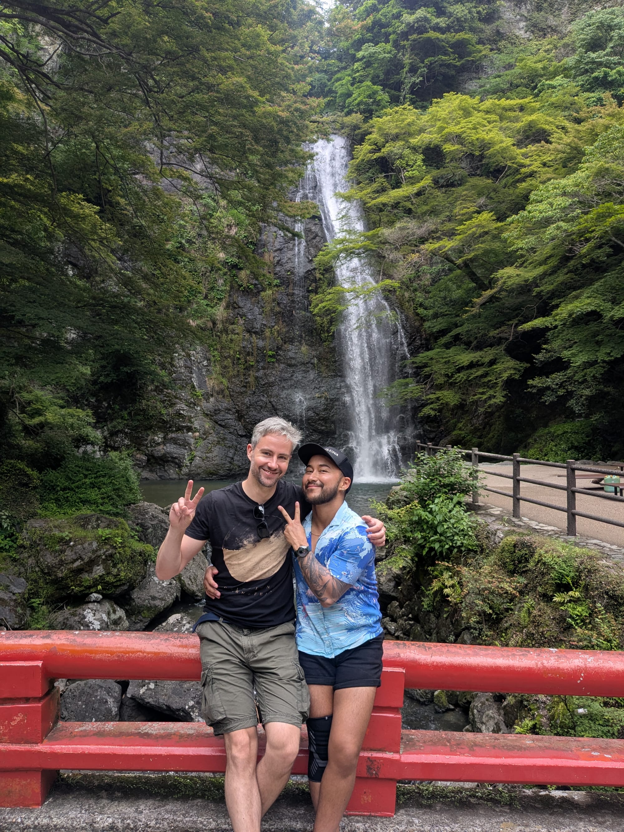 Nu had ik dit al een beetje de weg naar boven, maar toen ik voor het eerst oog in oog met de waterval stond kwam die toch even binnen. Heel bijzonder om dat zo mee te maken en ontzettend fijn om dan ook écht aanwezig te kunnen zijn en alles goed in me te kunnen opnemen. Omdat we er aan het eind van de middag waren was het ook niet al te druk, waardoor we nog even op een bankje konden zitten en konden genieten van de natuur om ons heen. En Geert van het bijna breken van zijn tanden op een pruimenpit. Soms is het handig om verpakkingen te vertalen, bijvoorbeeld wanneer er staat "Kijk uit, bevat pruimenpit". Gelukkig kon Geert hem ook weer uitkotsen. Was die kipsashimi toch nog ergens goed voor.