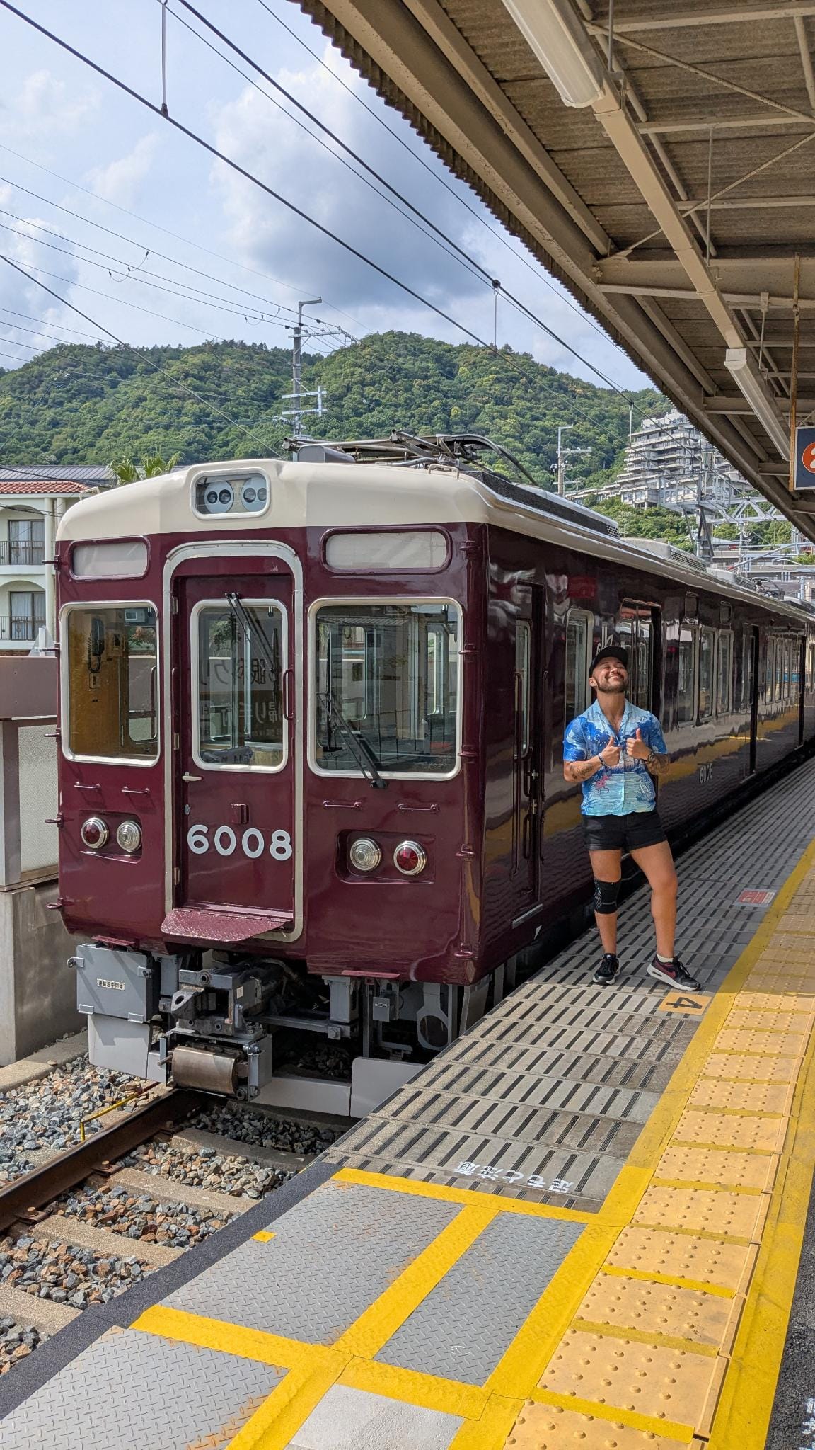 Met 30 graden en een brandende zon was het best lekker om verkoeling te zoeken in het Noodlemuseum. We waren allebei heel erg hyped om onze eigen noodles te maken, en de voorpret begon al met de reis, want we mochten met de Hankyu line. Wat een prachtige treintjes zijn dat, en als je voor- of achterin zit kan je uit het grote raam kijken. De conducteur werd erg blij van mijn enthousiasme. Gelukkig heeft hij niet gezien dat ik later aan zijn trein heb gelikt.