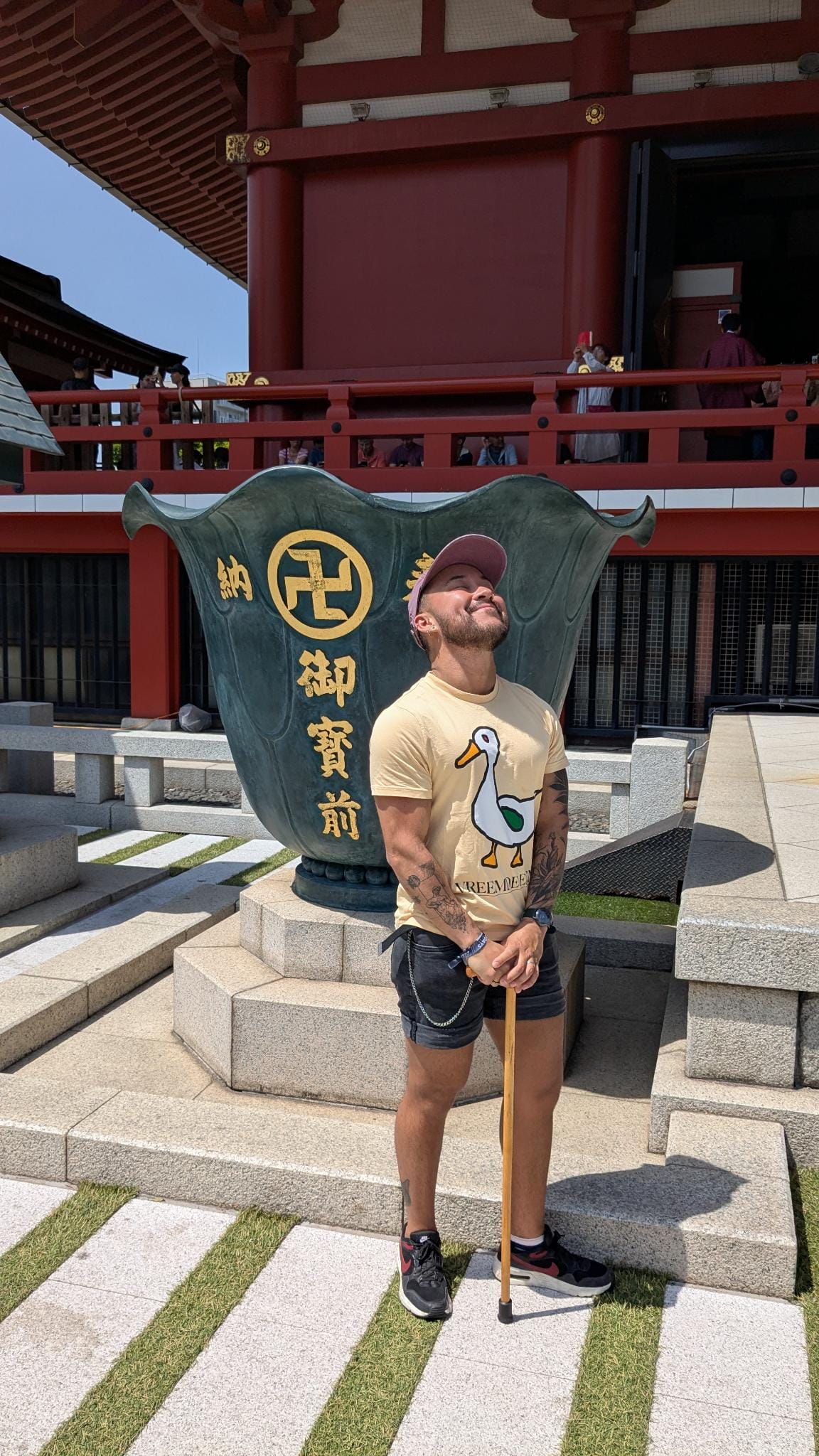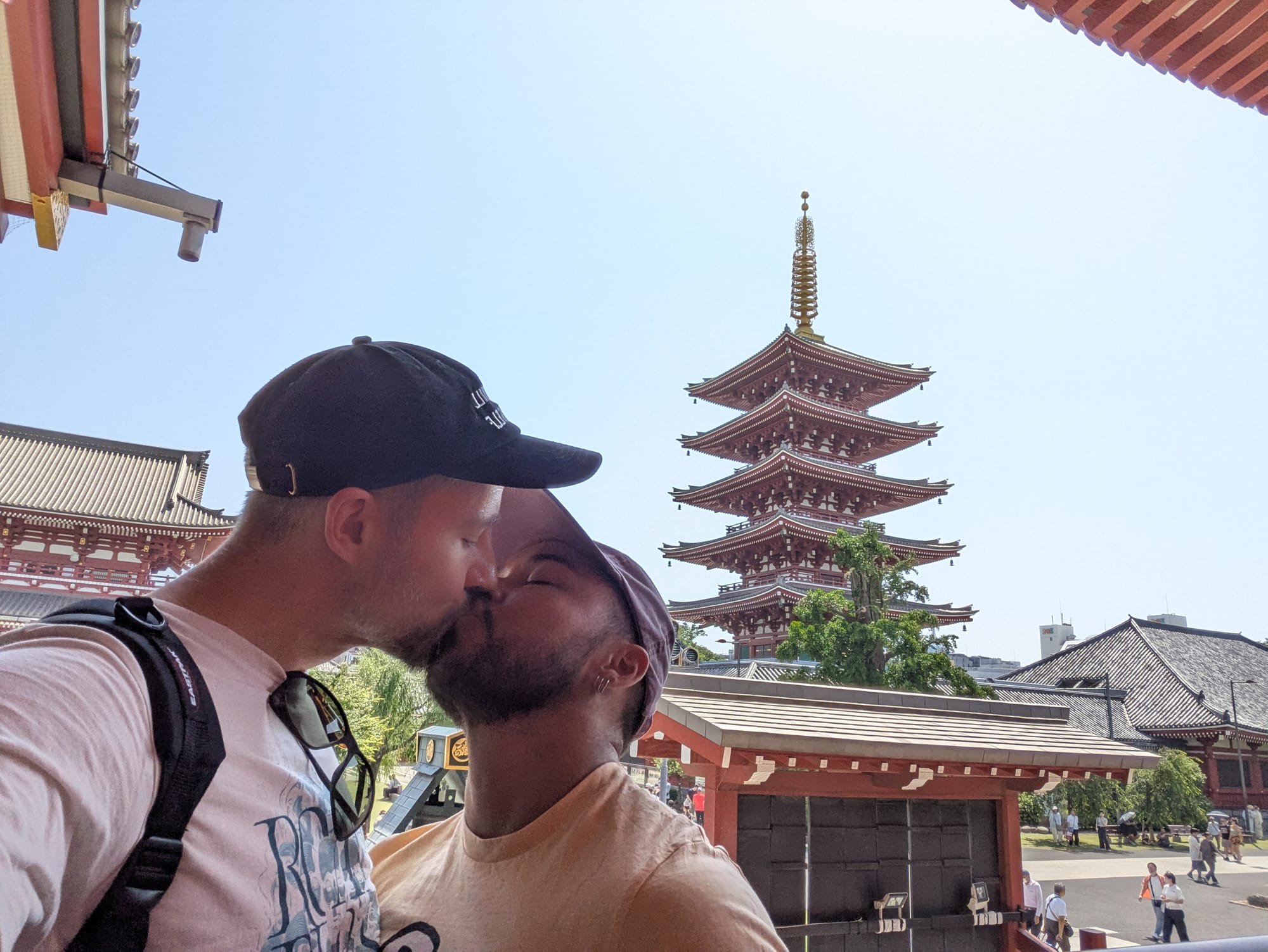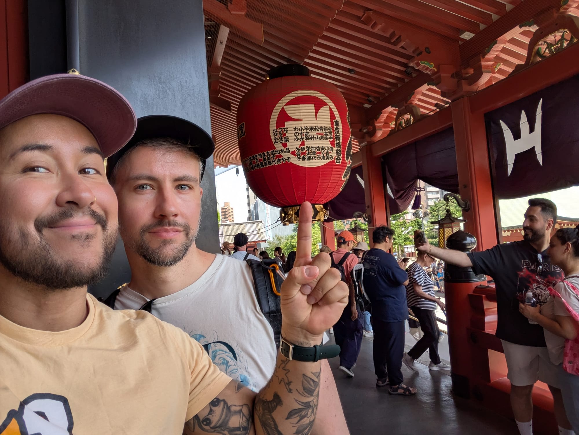 Leven met PTSS betekent voor mij ook leven met een slaapgebrek. Ik sta nagenoeg altijd aan, en dat maakt voor mijn lijf de scheidingslijn tussen "alles is oke" en "de dood is nabij" erg dun. De laatste weken was het al niet best, maar een vreemde omgeving maakt een goede nachtrust onmogelijk. Slaapmedicatie werkt niet, of komt met een verergering van mijn andere PTSS-gerelateerde klachten overdag, dus dan deal ik er maar mee. Maar wanneer je de hele nacht droomt over wat je in eerste instantie liever helemaal niet had meegemaakt of zelfs had verdrongen, begin je je ochtend niet even gezellig. Dus vanochtend miste ik Jan bijvoorbeeld ontzettend erg en bleven bepaalde gebeurtenissen zich in mijn hoofd afspelen. Maarja, je bent toch in Tokio, dus wat knuffels en liefde later waren we toch onderweg naar Asukasa om onder andere Senso-Ji te bewonderen, een van de grotere en bekendere tempels van de stad - of misschien wel Japan? Wat ben ik weer goed voorbereid. In ieder geval: tempel, groot, druk.