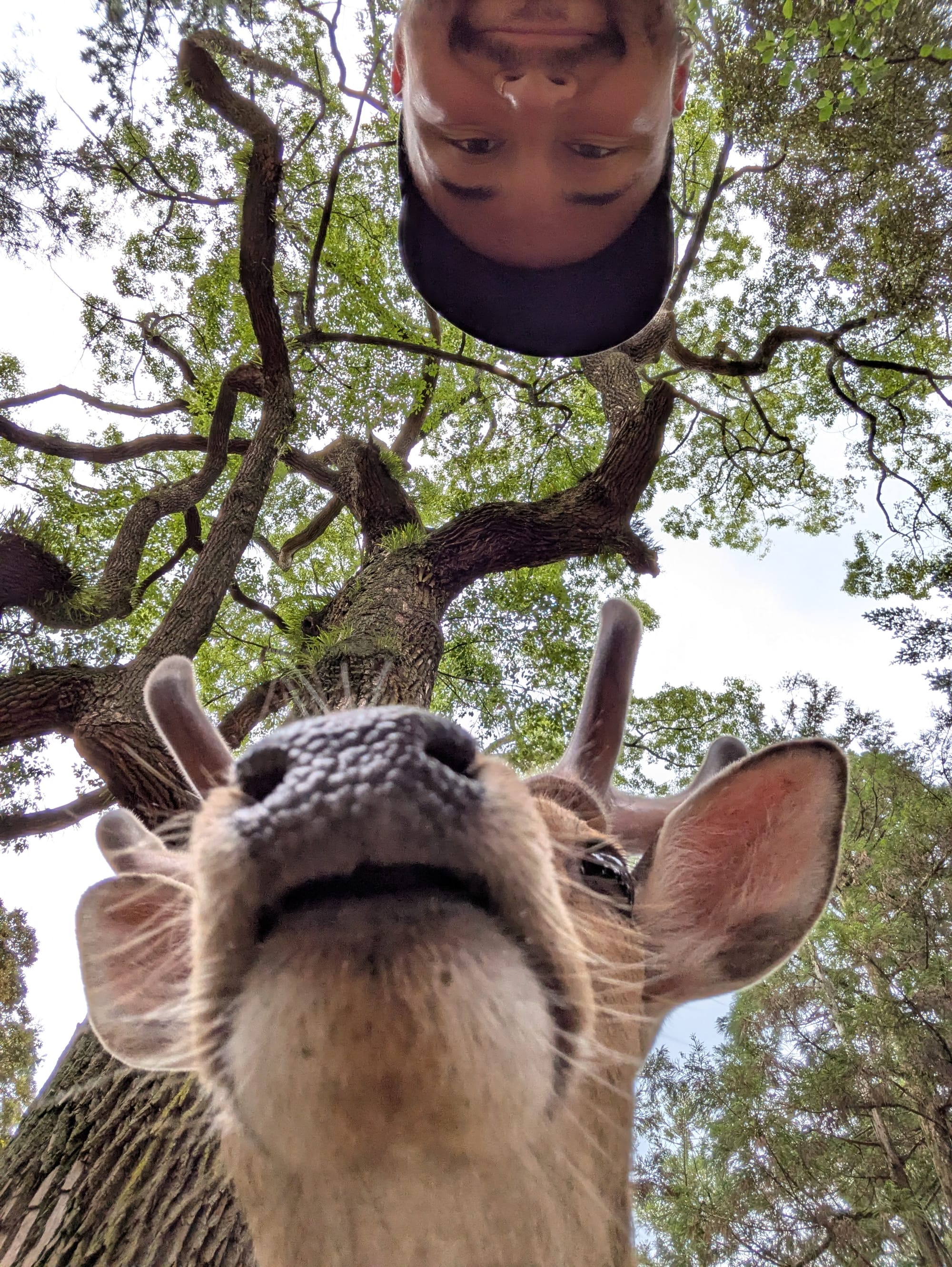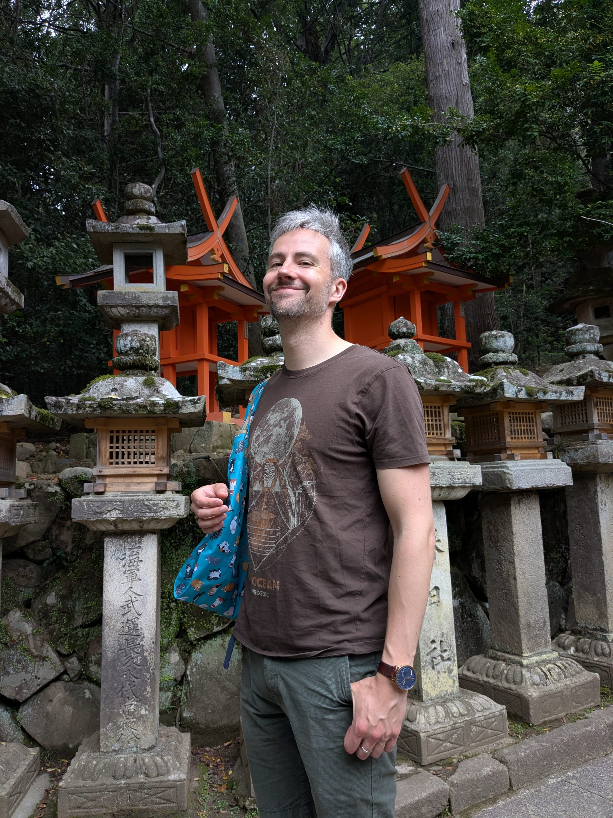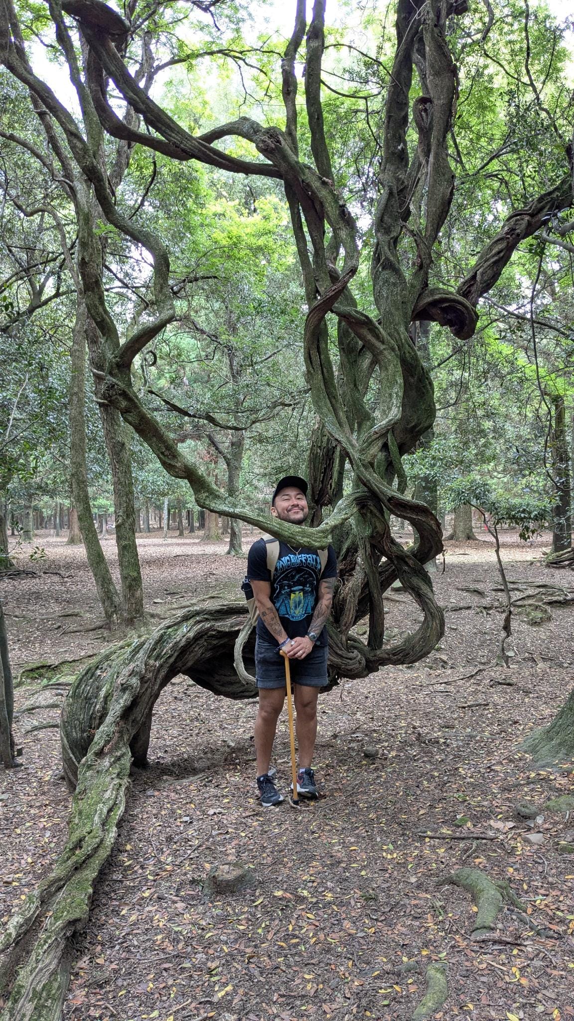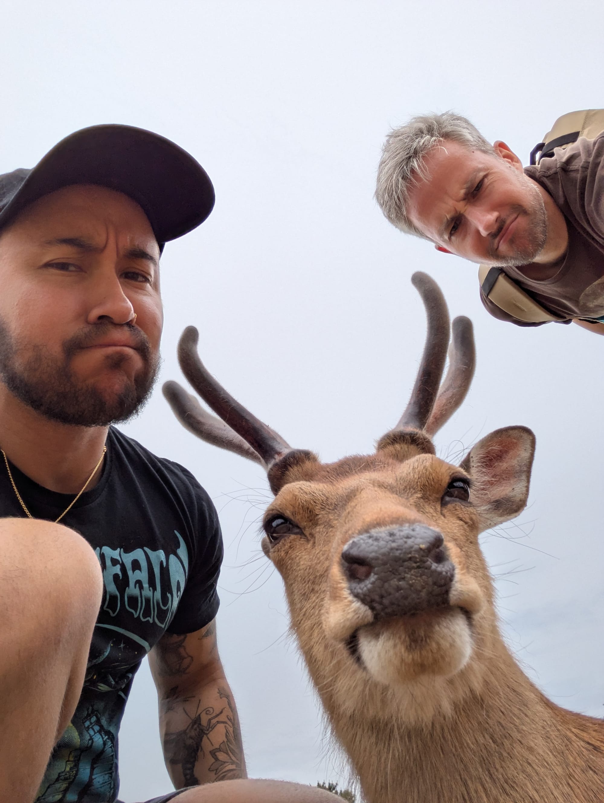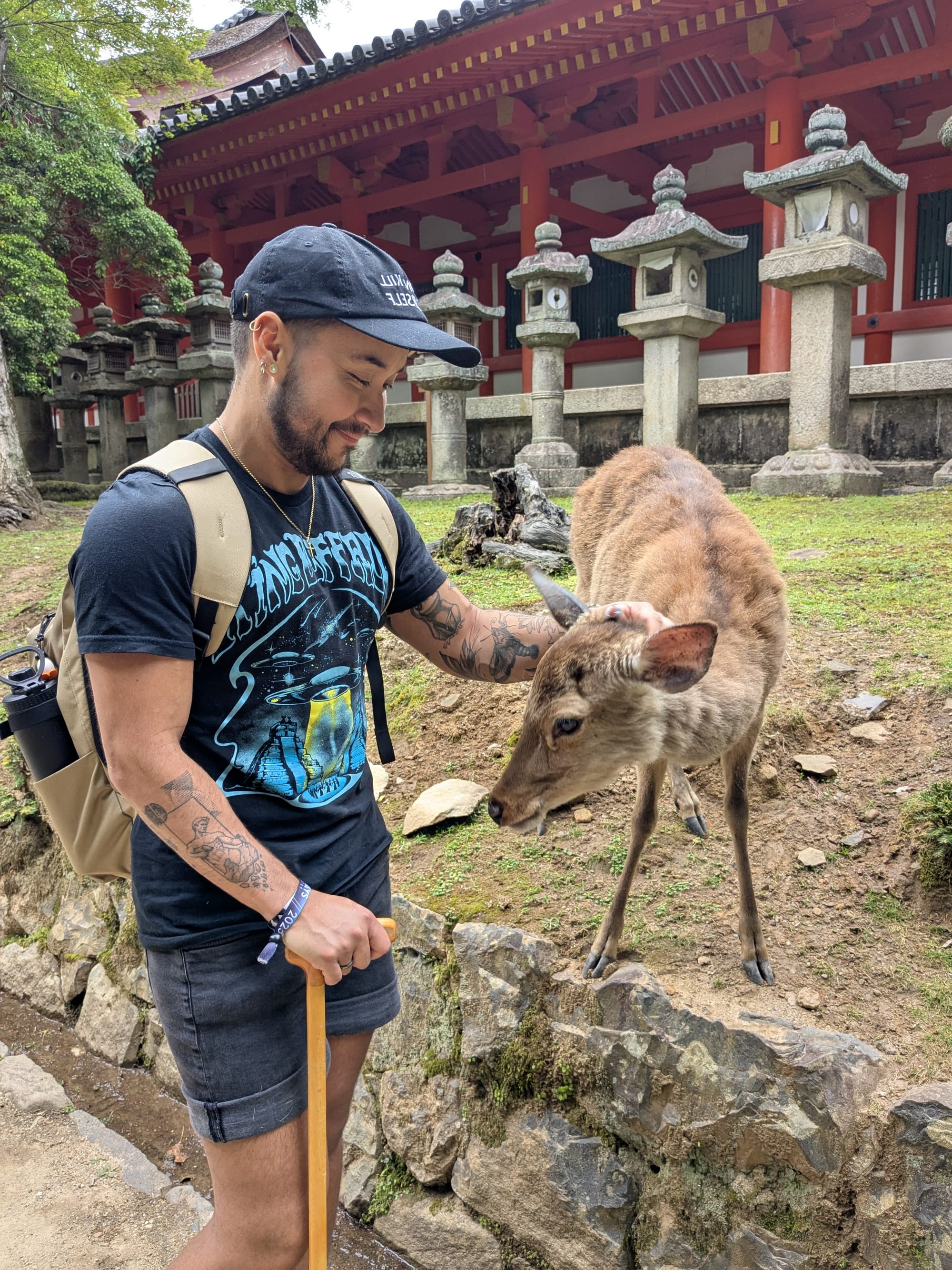 Een ontzettend populaire locatie en daarmee geheid druk. Buiten kan ik dat opzich wel hebben, maar gezien het een week sinds mijn laatste dosis was, ging ik vandaag voor een microdose (ik zou dit weer puur hypothetisch kunnen houden, maar wie hou ik voor de gek?) en Geert deed vrolijk met mij mee. Druk was het zeker, met name rondom het station aan het begin van het park. Al begon het wel gelijk goed: Geert spotte iemand met een Blood Incantation shirt. Die moest ik natuurlijk even aanspreken, en zo had ik een leuk gesprek met deze Florida Man over muziek en de deathcore scene aldaar. Onze wegen scheidden toen we even bij een tempel wilden kijken, maar het was er zo druk en de pagode was verlegen, dus we zijn gauw gevlucht. Wel bijzonder om herten, die wij toch als redelijk schichtig kennen, zo te zien chillen tussen alle mensen, klaar om gevoerd te worden met koekjes en liefde. Goals.