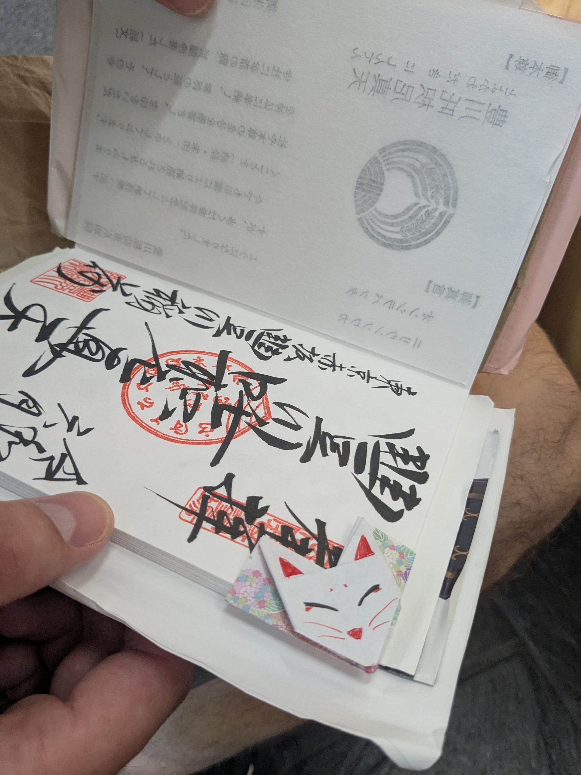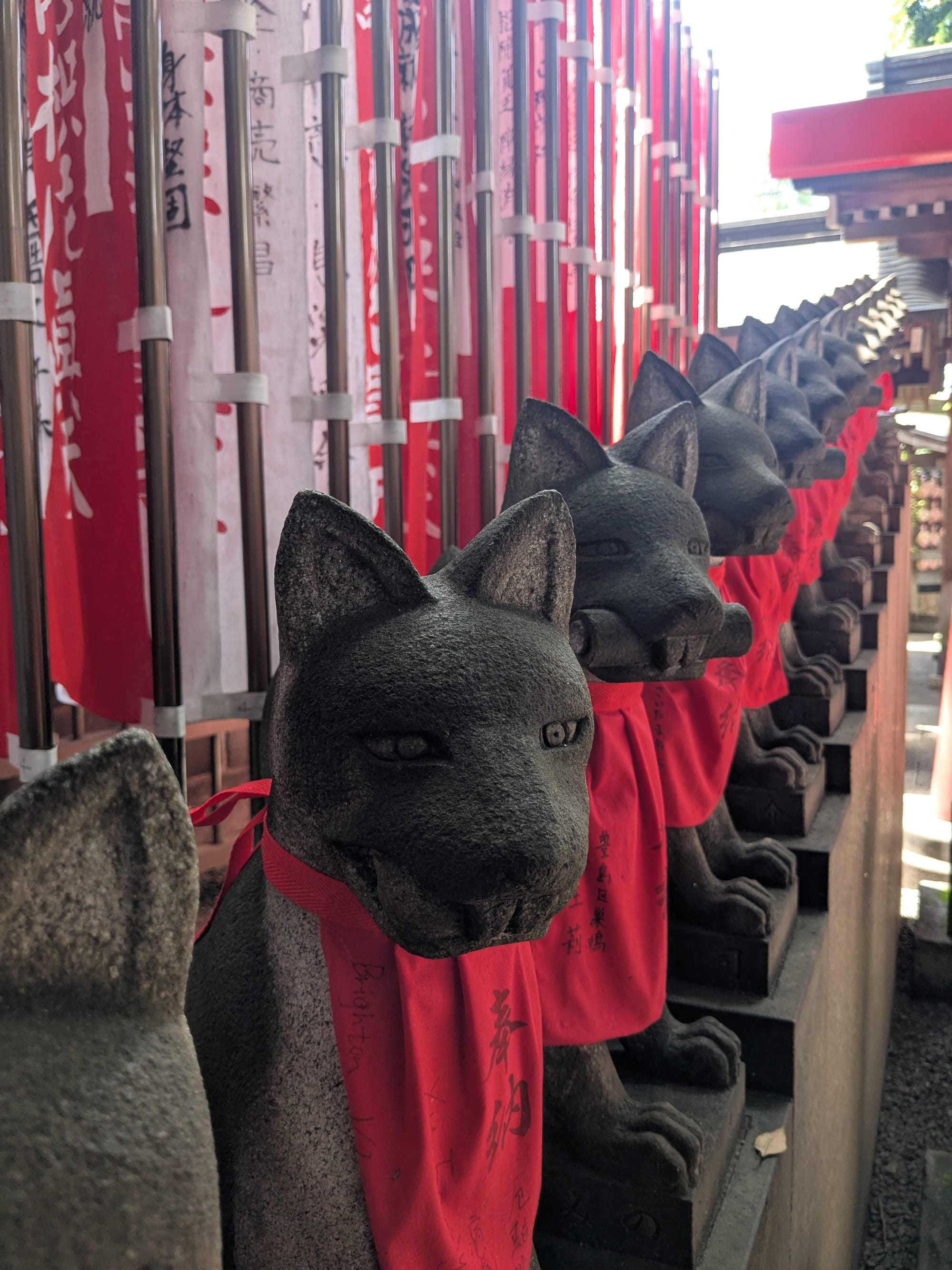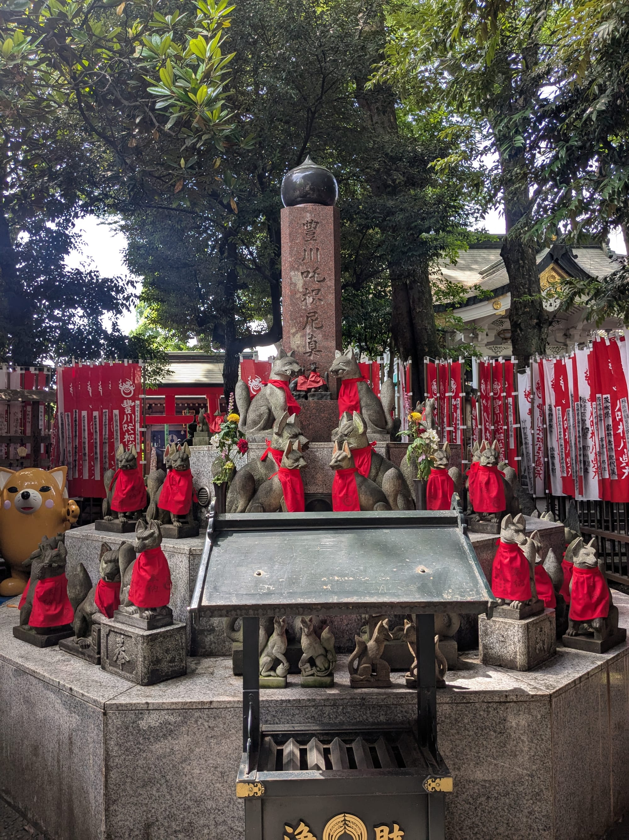 Op die planning stond de Toyokawara Inari Shrine als eerst, een boeddhistisch tempelcomplex met veel vossenbeelden. Ondanks dat dit tempelcomplex hoort bij de Soto-school van het Zenboeddhisme, had het veel Shinto-elementen en dat was mooi om te zien. Wat nog mooier was, was dat ze begonnen te bidden toen we aankwamen. Heel hypnotiserend om ze zo te horen _chanten_ voor zo'n lange tijd. Zo lang kan ik mijn adem niet inhouden hoor. De grote hoeveelheid vossenbeelden was toch wat mijn hart won. Dit was overigens de eerste tempel in best een tijd voor ons - alleen op de eerste of tweede dag in Osaka hebben we er een bezocht en daarna niet meer. Fijn om daar weer eens te zijn.