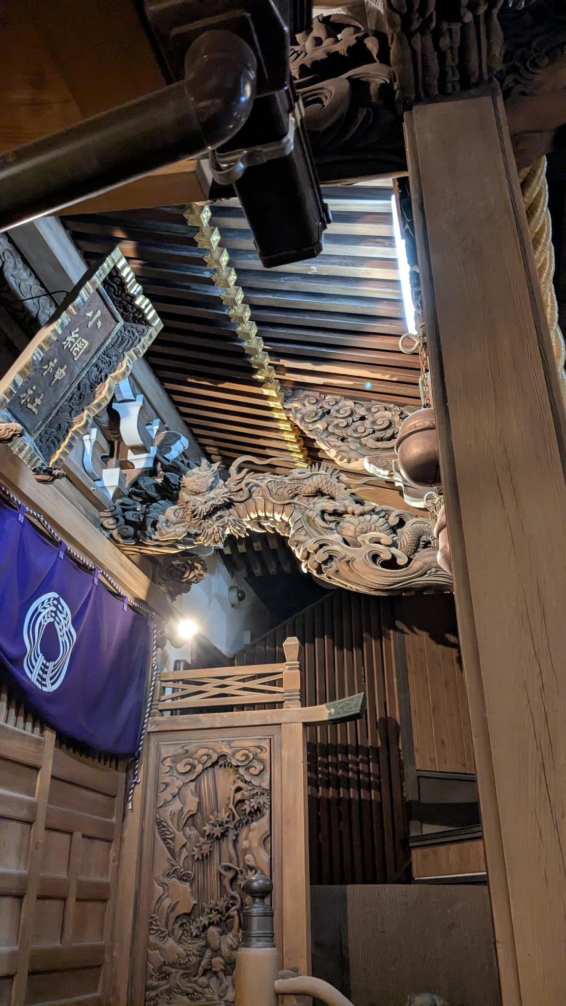Via meer ballenautomaten (ik zocht iets specifieks, ik zweer het) en ons goedkoopste diner tot dusver belandden we met een taiyaki- en tempelomweg weer in het hotel. De tempel (eigenlijk shrine, maar dat allitereert niet, sue me) in kwestie, de Koami shrine, is overdag altijd megadruk. Iedereen wil de houtsnijwerken van de draken zien gok ik. We snappen nu ook wel waarom. Gelukkig konden we ze nu uitgebreid bekijken zonder hele menigten om ons heen.