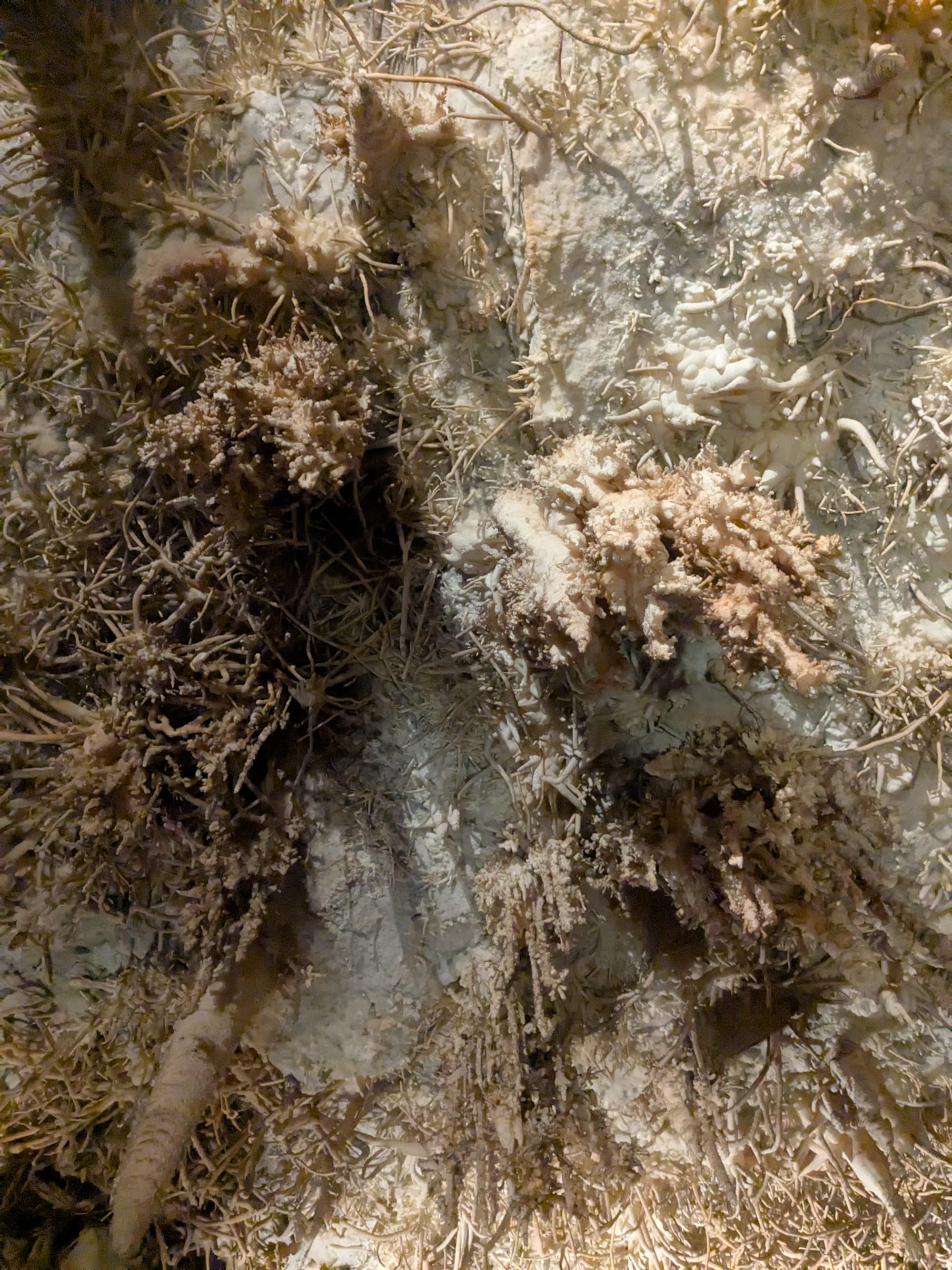 Na een korte maar adembenemend steile rit omhoog (inclusief mooi symbool) kwamen we aan bij de Pozalagua Cuevas. Niemand van ons was voorbereid op wat we daar te zien kregen. Zulke rare mineraalformaties heb ik nog nooit gezien! Echt onbeschrijfelijk mooi, en uiteraard heb ik er stiekem ook een gelikt. Tot mijn verbazing smaakte het niet eens zout! Het hoogtepunt voor mij was toch wel toen alle lichten uit gingen in de grot en we gehuld waren in totale duisternis en stilte, op het druppen van het water na dan.
